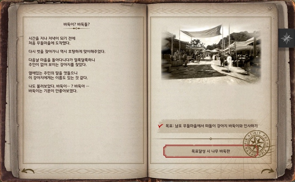 → 남포 무들마을 <협탁상인> 철섬 맞은편에 있는 흰 바탕에 검은 무늬가 있는 강아지와 상호작용하면 됩니다.