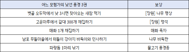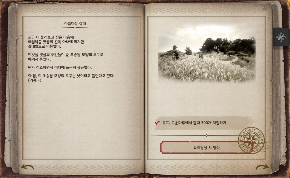 어느 모험가의 낯선 풍경 3권을 완료하면 주거지와 장원에 쓸 수 있는 아이템을 획득할 수 있어요.