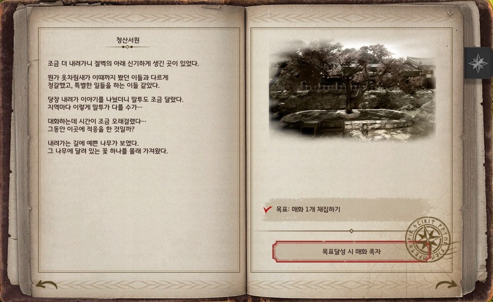 → 청산서원으로 가지 않아도 상관없어요. 매화를 채집하기만 하면 완료됩니다.