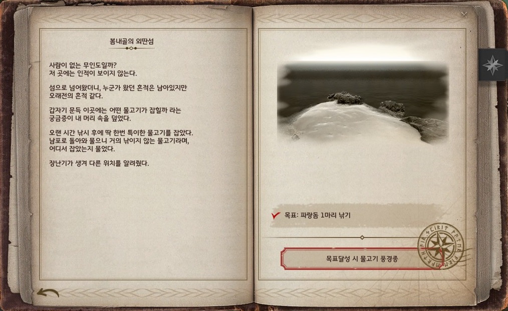 → 저는 다른 의뢰도 같이 해서 벽계섬에서 낚았지만, 남포 해역이면 다 낚이는 듯 합니다. 4번 바둑이를 찾고 남포에서 낚으시면 돼요.