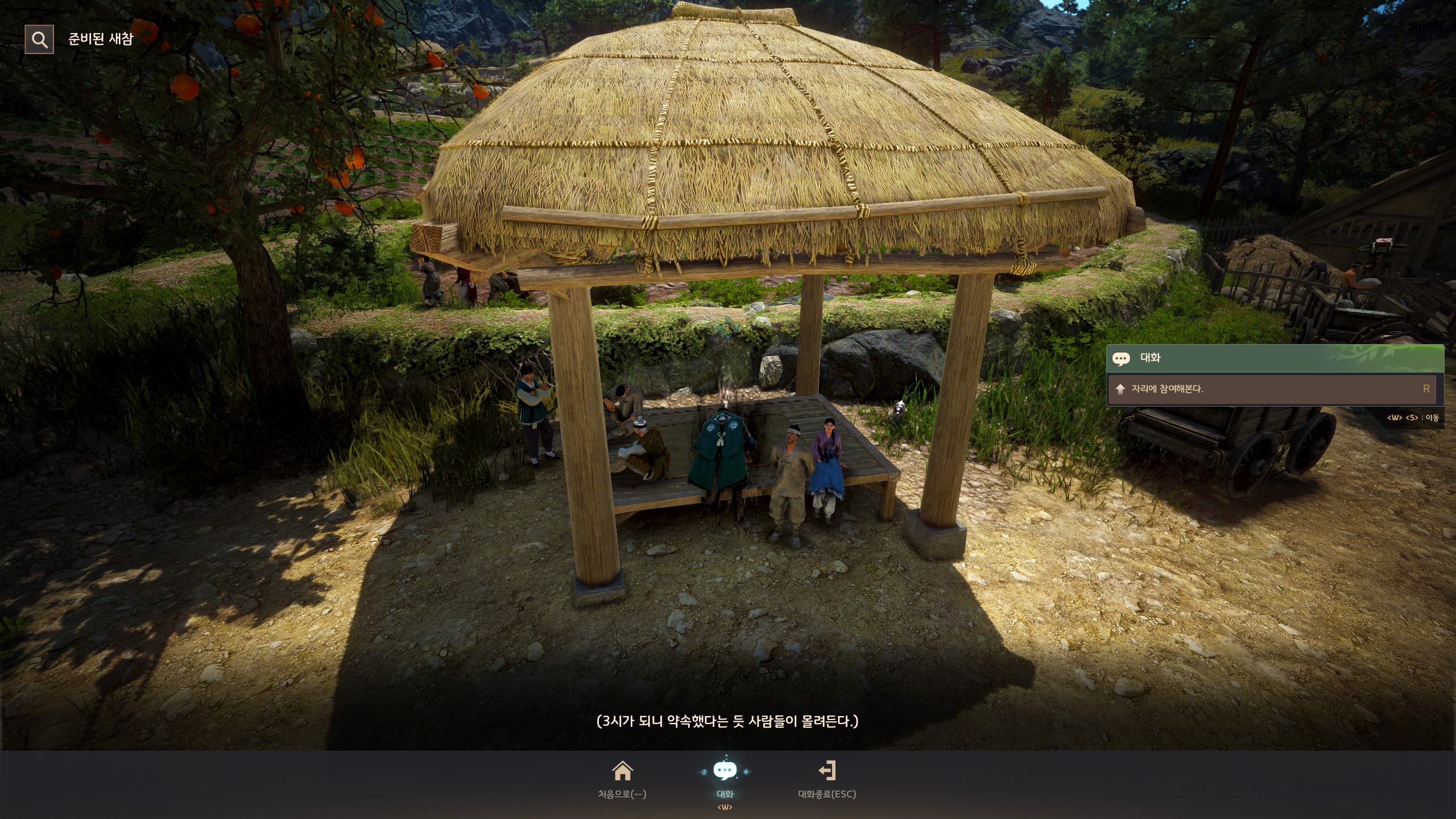 → 볏골 높새마을의 <창고지기> 고영에게 가기 전에 있는 평상에 상호작용 포인트가 있어요. 인게임 시간으로 PM 03:00부터 활성화가 됩니다. 이번에는 늦게 가지 않아서 종료 시간은 알지 못해요.