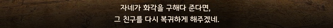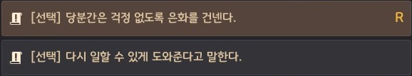 은화를 주는 의뢰는 2개로 간단하게 끝낼 수 있고 다시 일하게 도와주는 의뢰는 5개의 의뢰를 더 해야 하고 화각도 직접 채집해야 하기 때문에 좀 더 귀찮습니다.