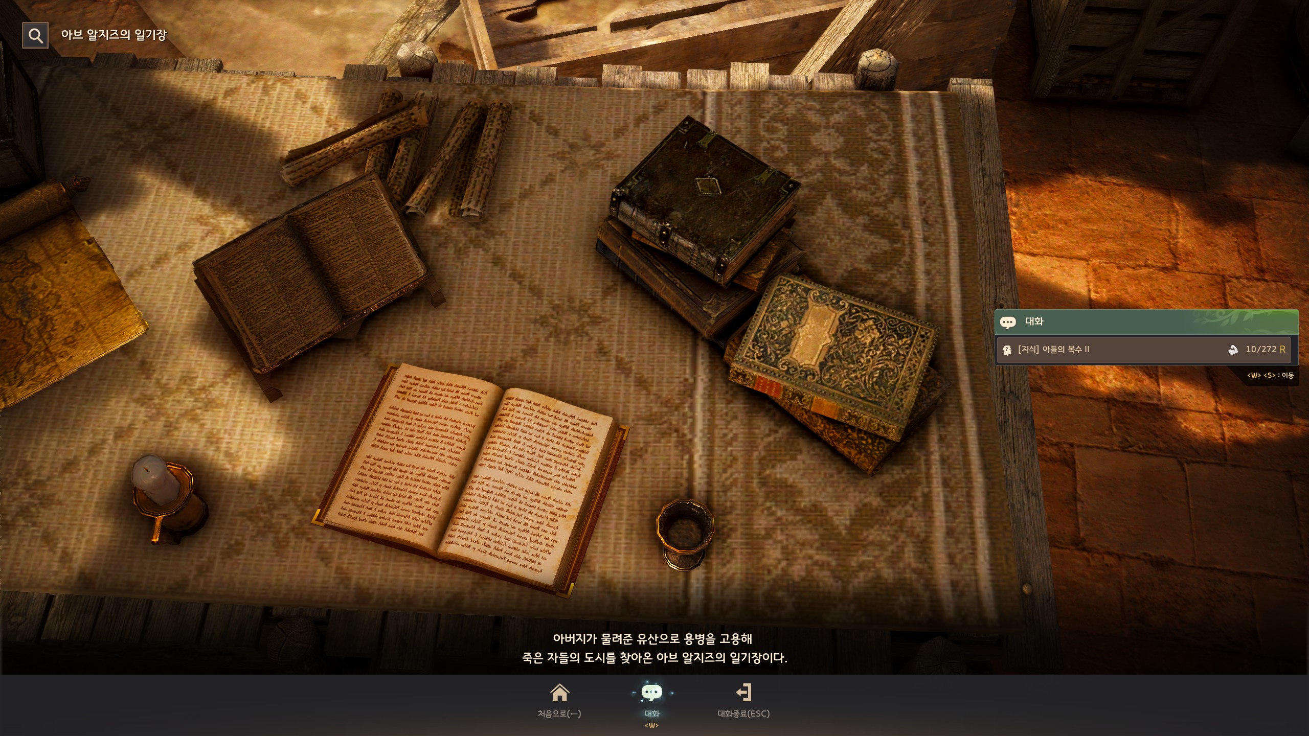 → <탐험 거점 관리> 알브 아지즈 뒤 오른쪽 책더미