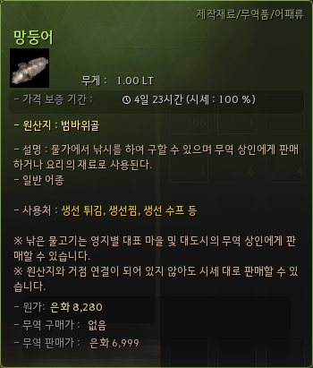 - 심청의 신묘한 어항에 물고기를 보관하면 해당 물고기의 가격 보증 기간이 5배 늘어납니다.