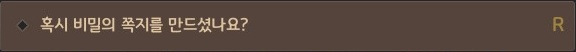 - 상자를 열어 쪽지를 획득한 후에 쪽지와 관련된 주민에게 가져다주면, 은밀한 비밀의 지식을 획득할 수 있습니다.