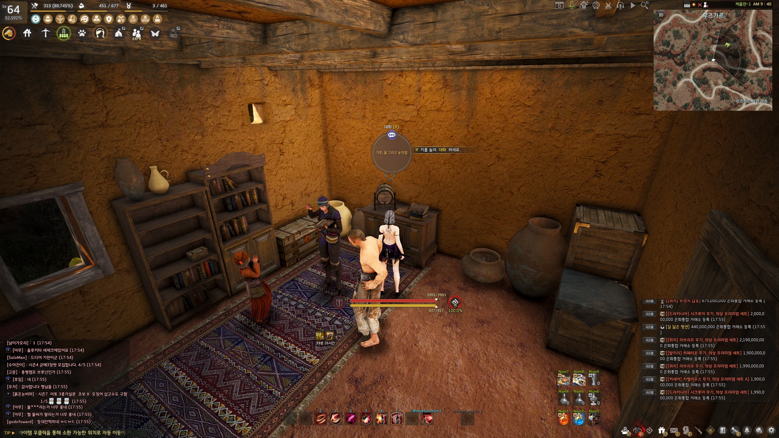 → 28번 지식이 있는 건물 오른쪽에 3명의 NPC가 모여있는 곳