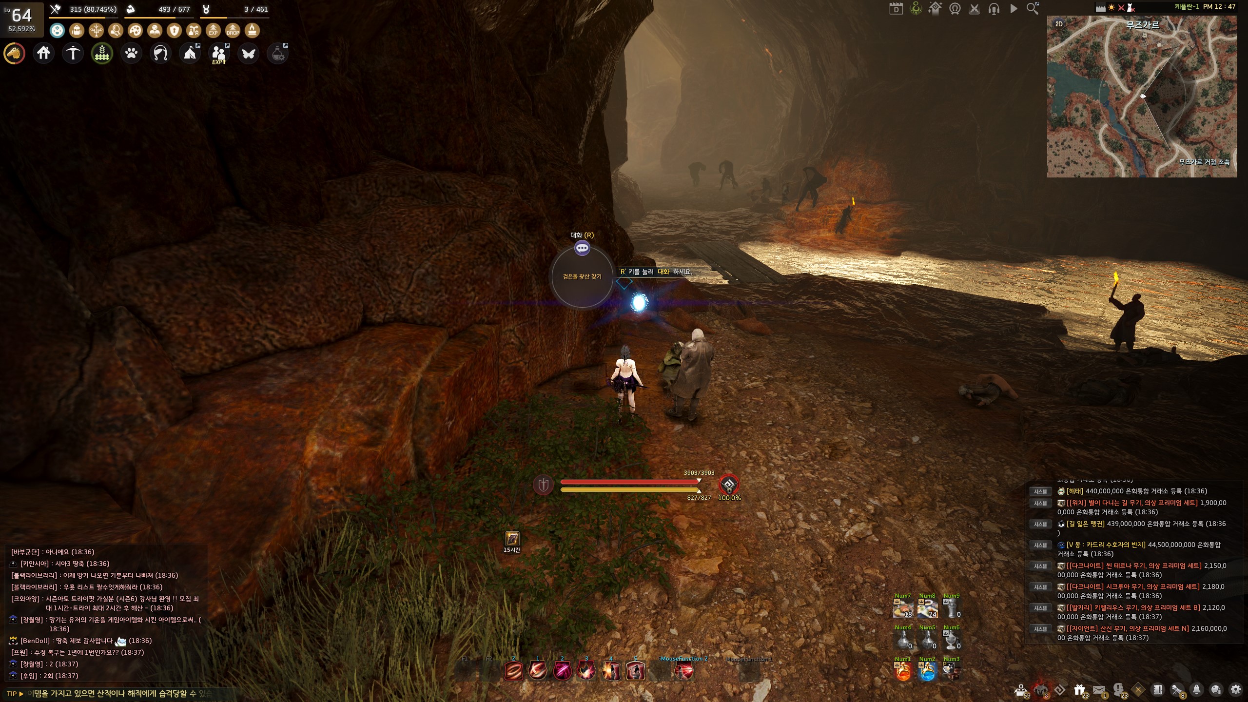 → 30번 지식을 얻고 나무로 만들어진 입구 말고 반대편 길을 따라 무즈가르 검은돌 광산 아래로 내려갑니다.