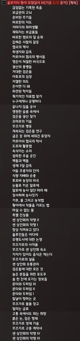 여기까지 하셨다면 울루키타 황야 모험일지 III 1번 ~ 35번까지 완료입니다.