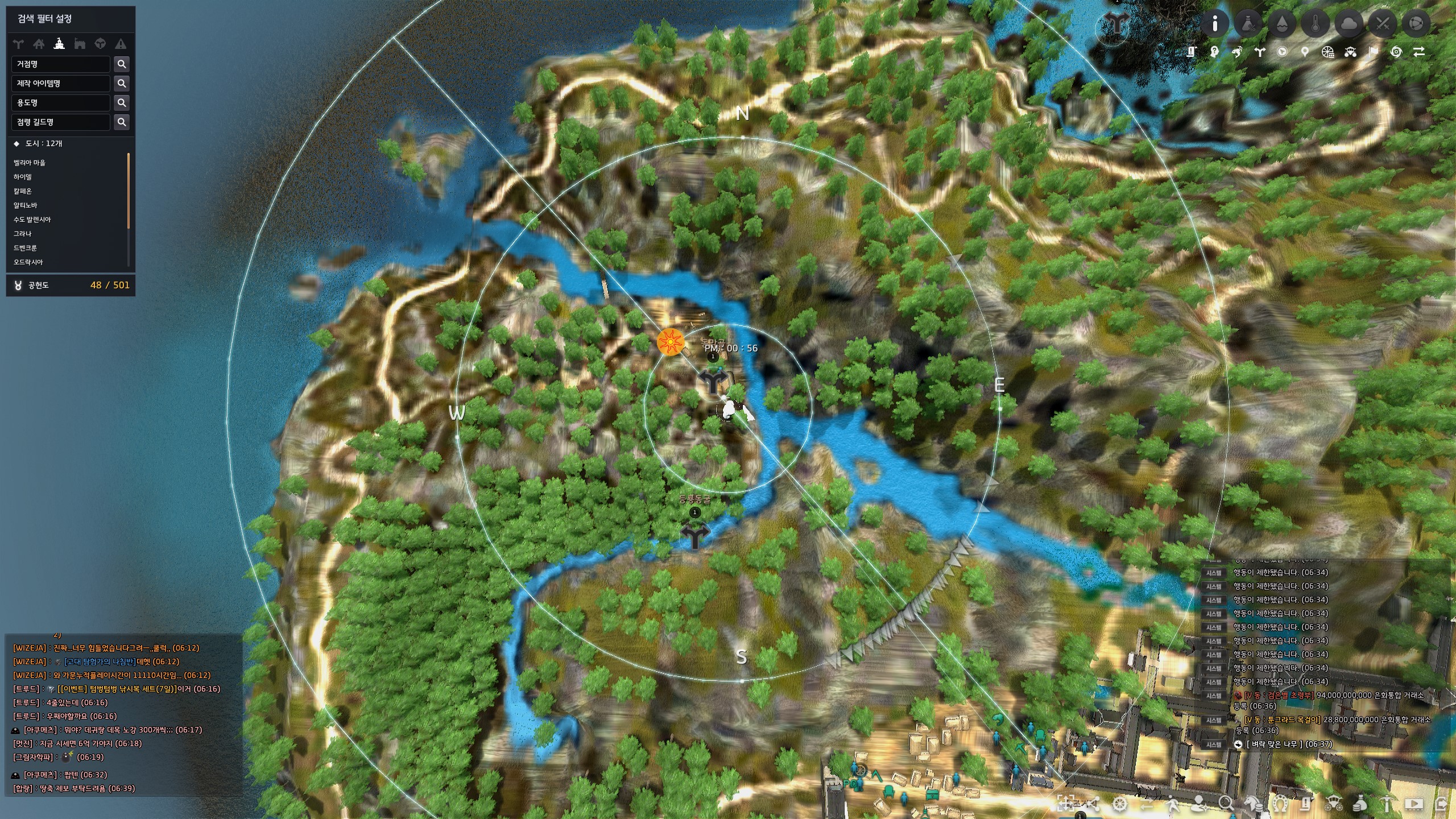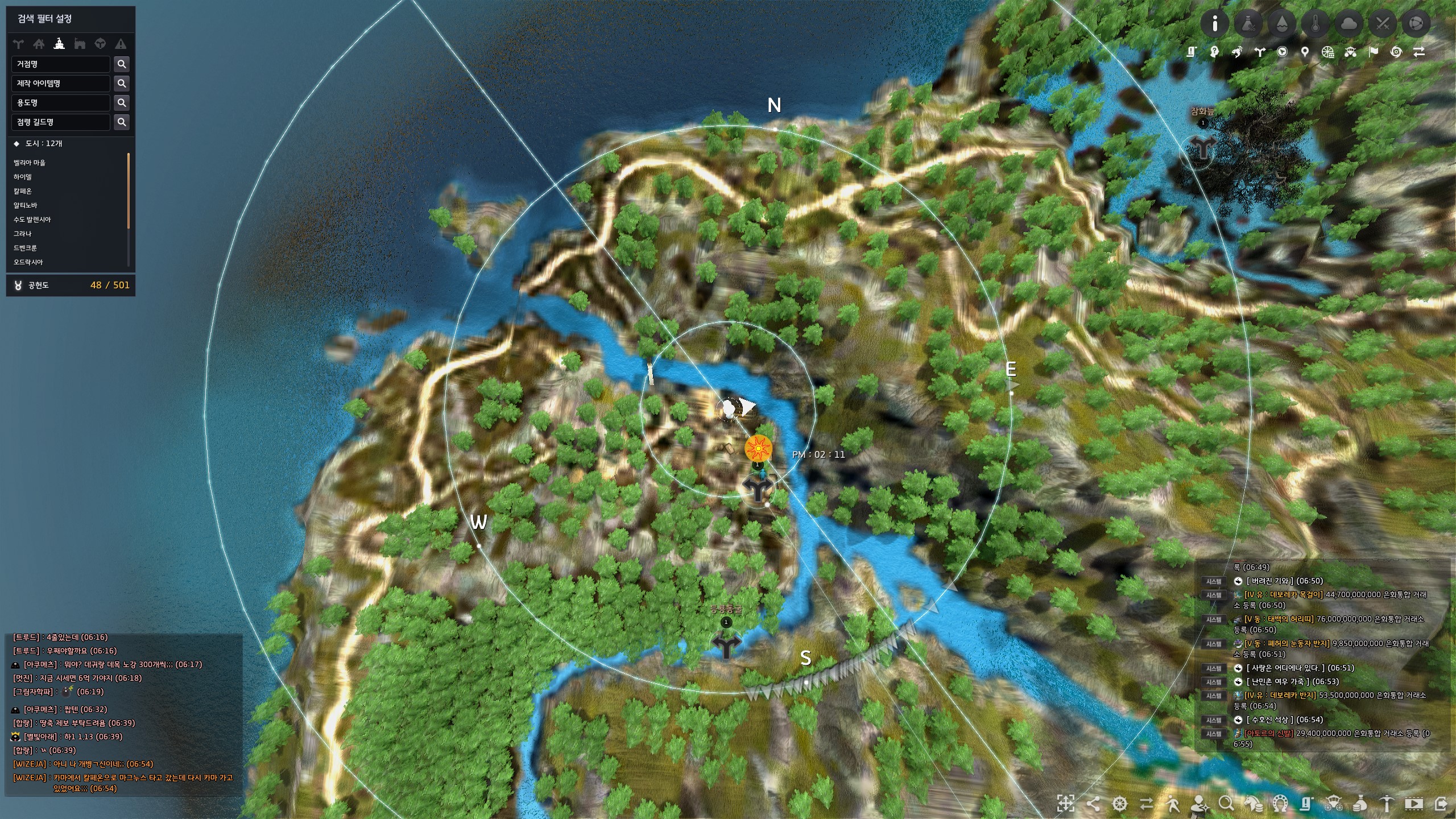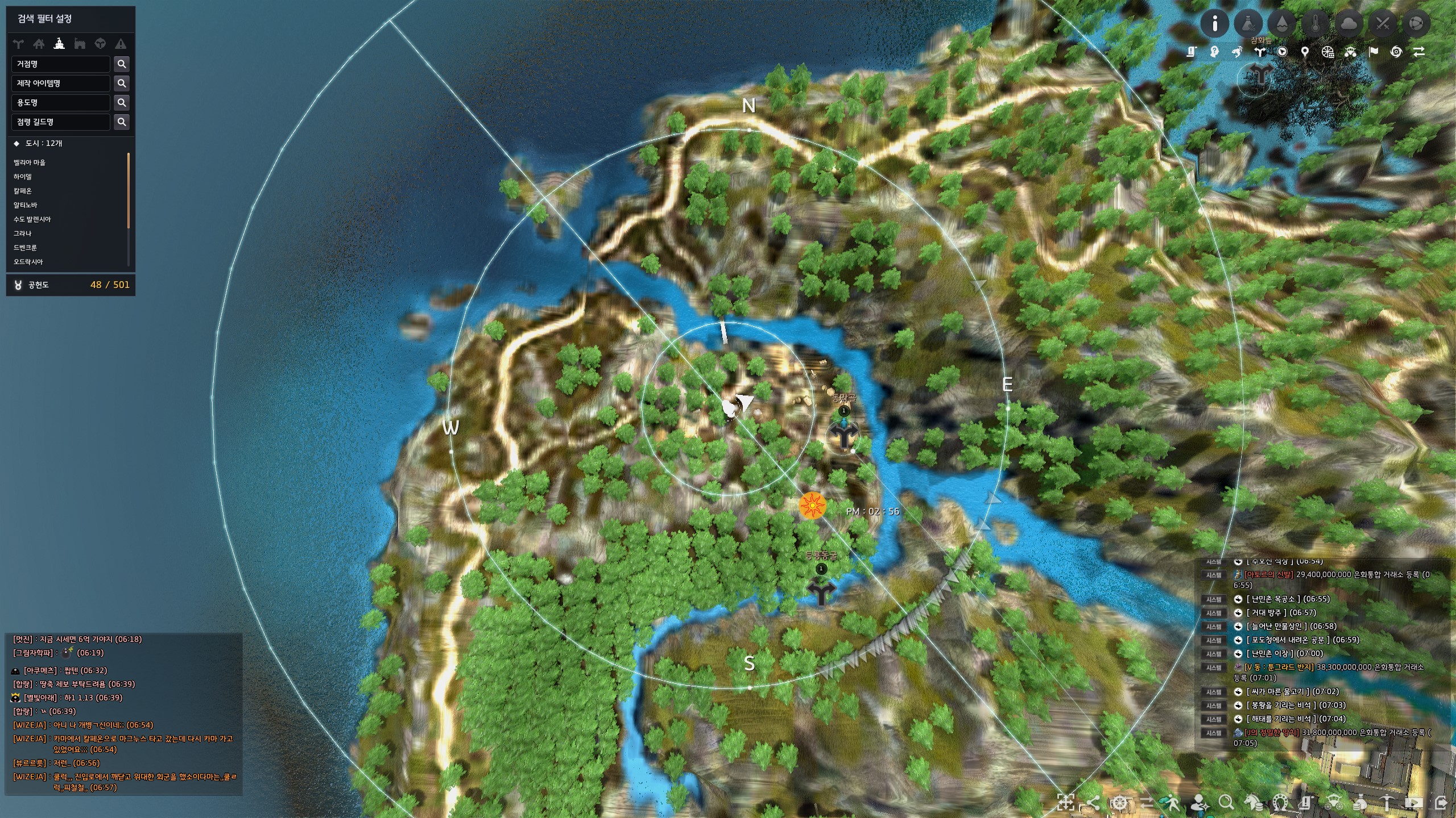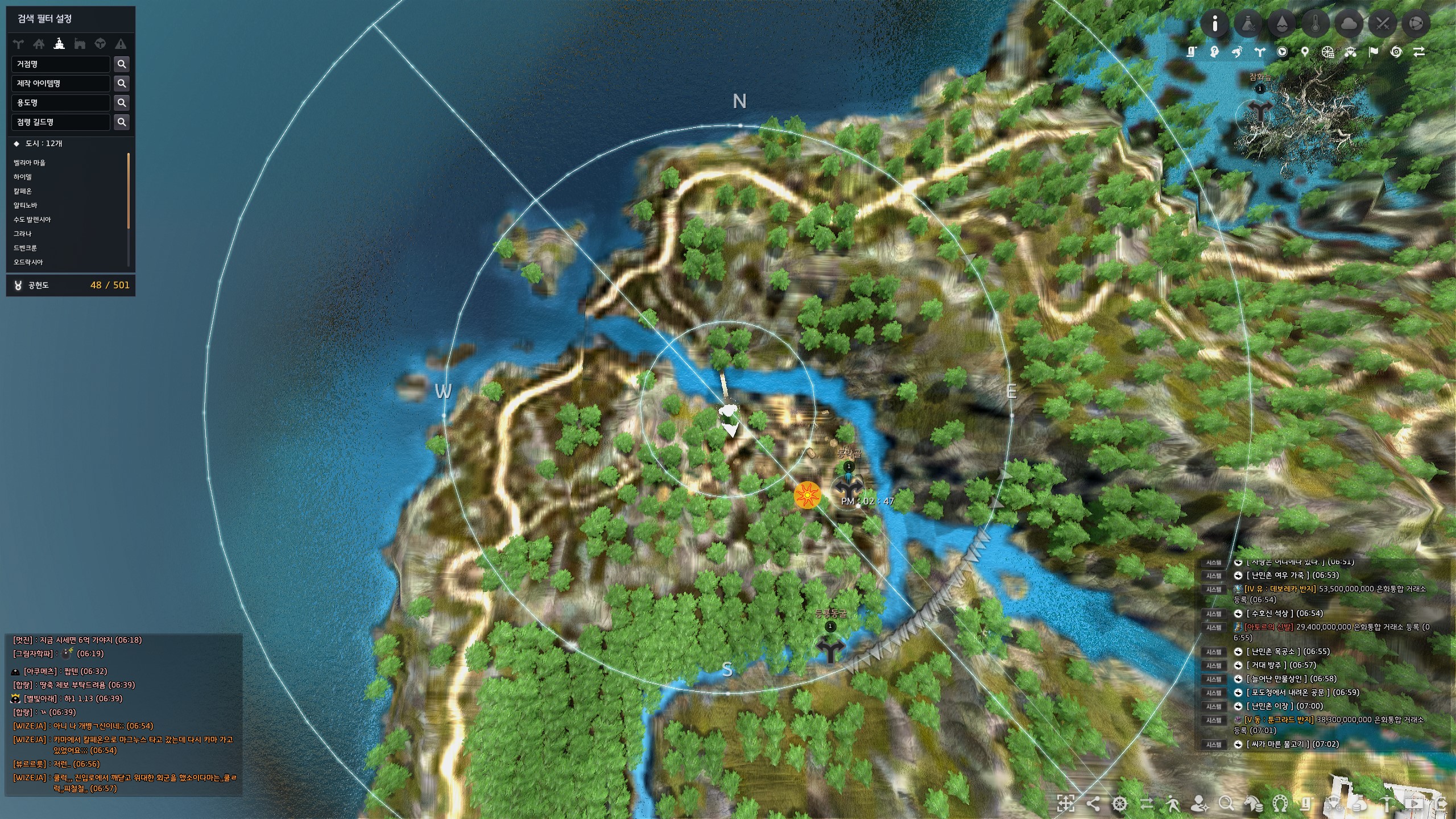 전체 월드맵으로 아침의 나라 : 황해도 모험일지 지식 위치를 대략적으로 표시해 둔 이미지입니다.