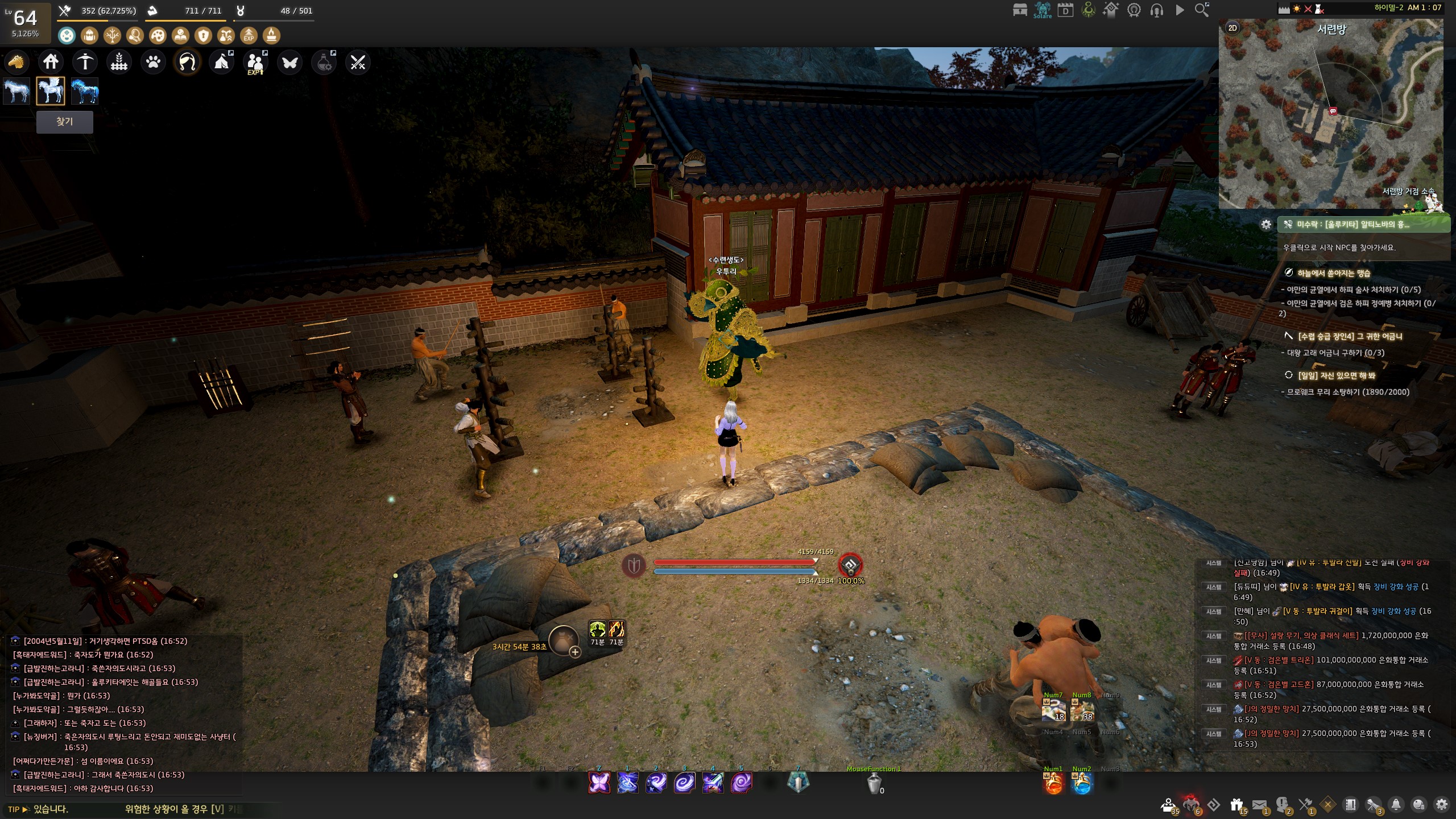 → 아침의 나라 : 서울 메인 의뢰 중 '[나그네전] 조례'를 완료 후, 서련방에 있는 <수련생도> 우투리와 대화