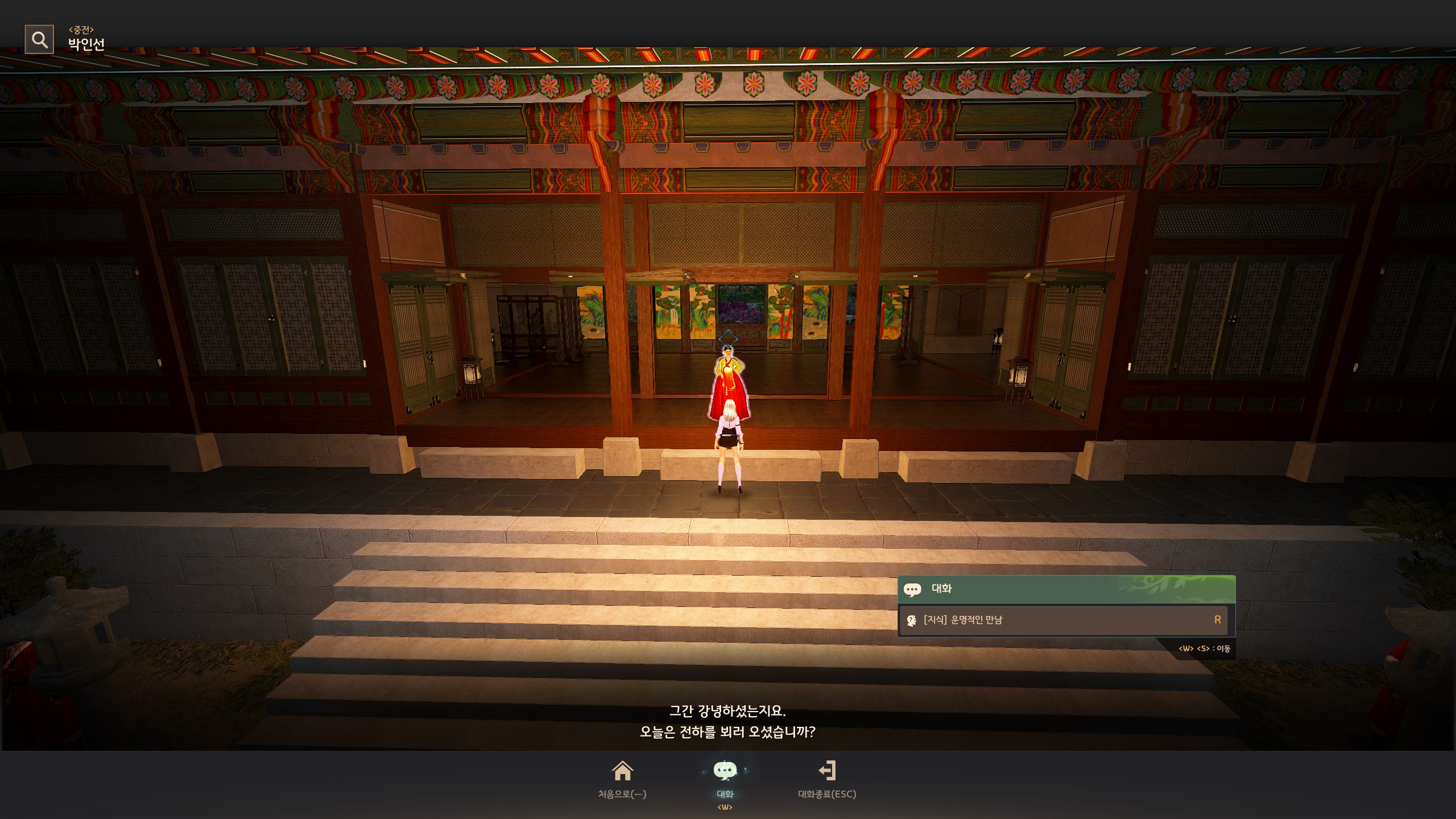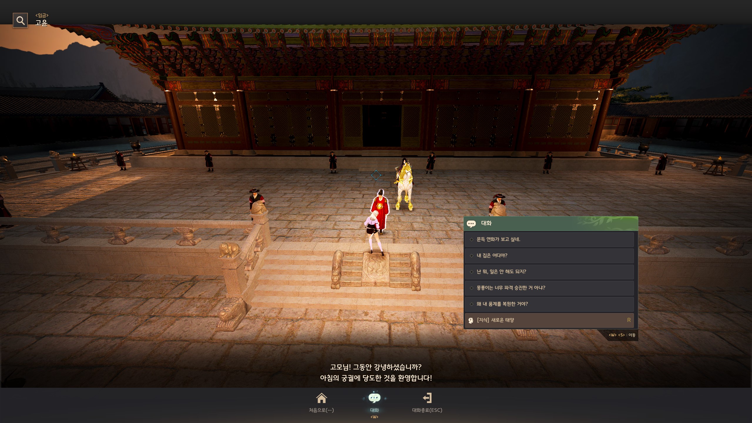 → 아침의 나라 : 서울 메인 의뢰 중 '[나그네전] 조례'를 완료 후, 근정전에 있는 <임금> 고윤과 대화
