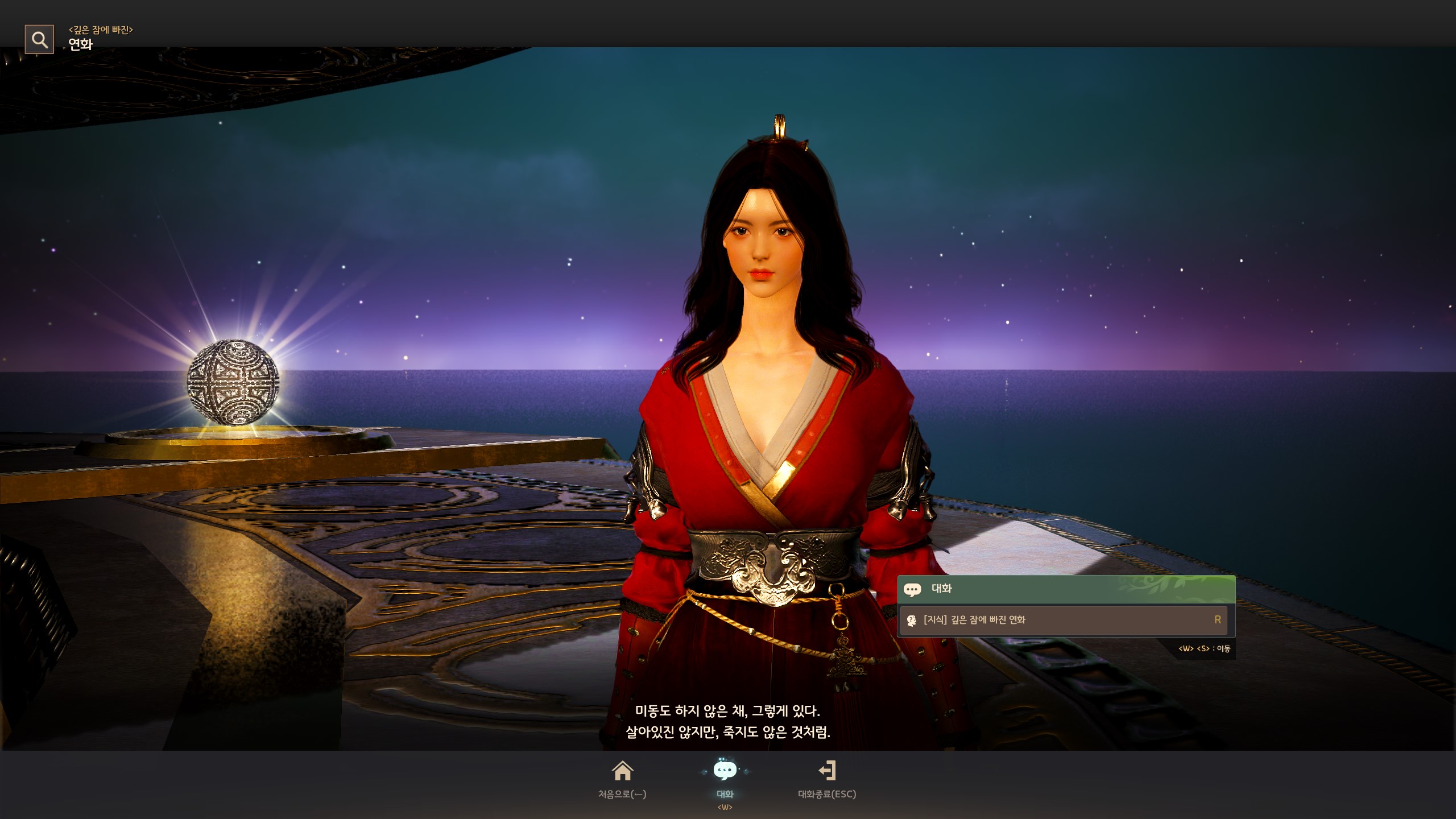 → 아침의 나라 : 서울 메인 의뢰 중 '[나그네전] 조례'를 완료 후, 마그누스에 있는 <깊은 잠에 빠진> 연화와 대화