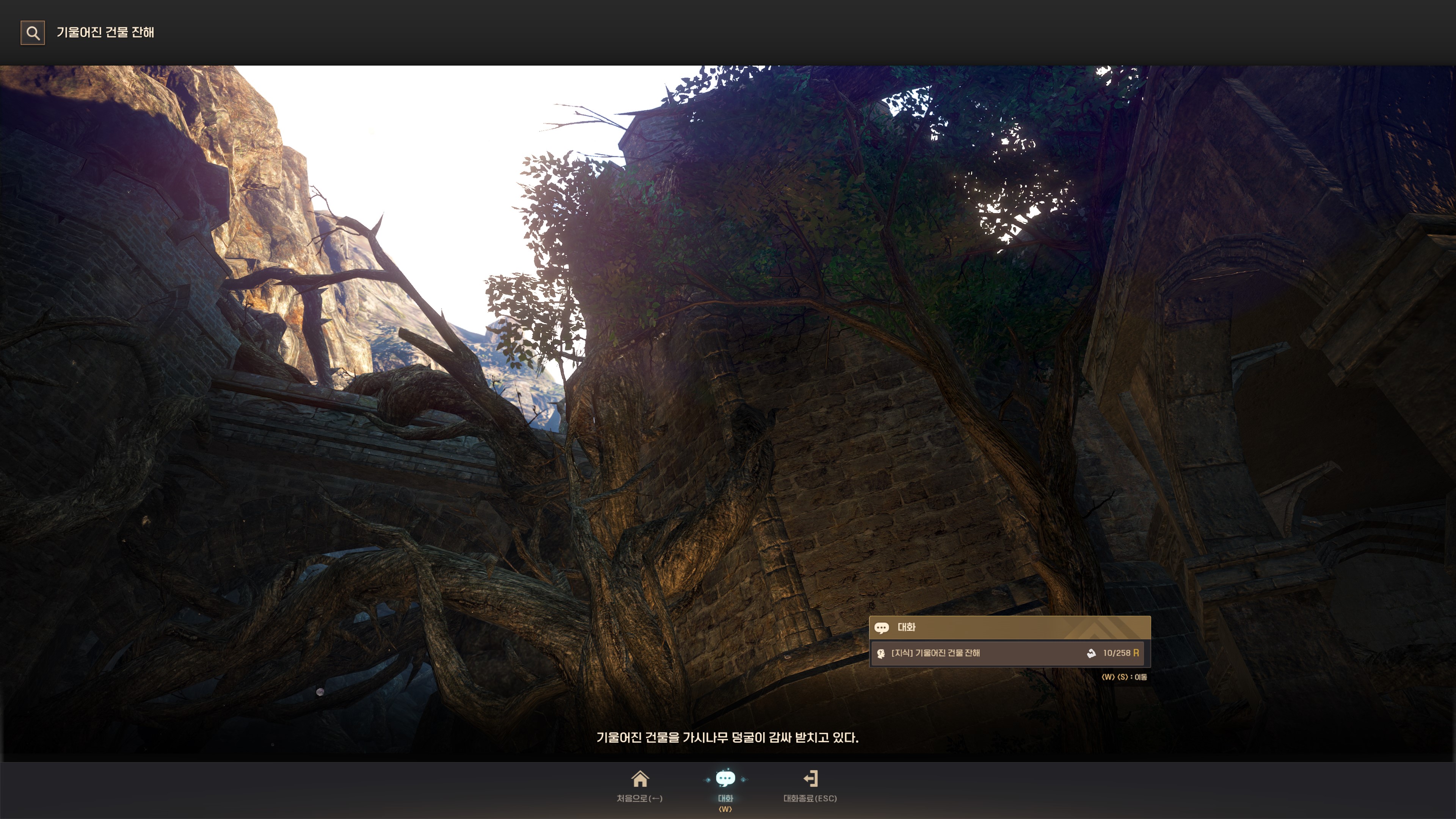 → 오르의 밑동 2번째 구역(다가오는 예언의 실타래) 오른쪽 부서진 건물. 지식 획득 시 기운 10이 소모돼요.
