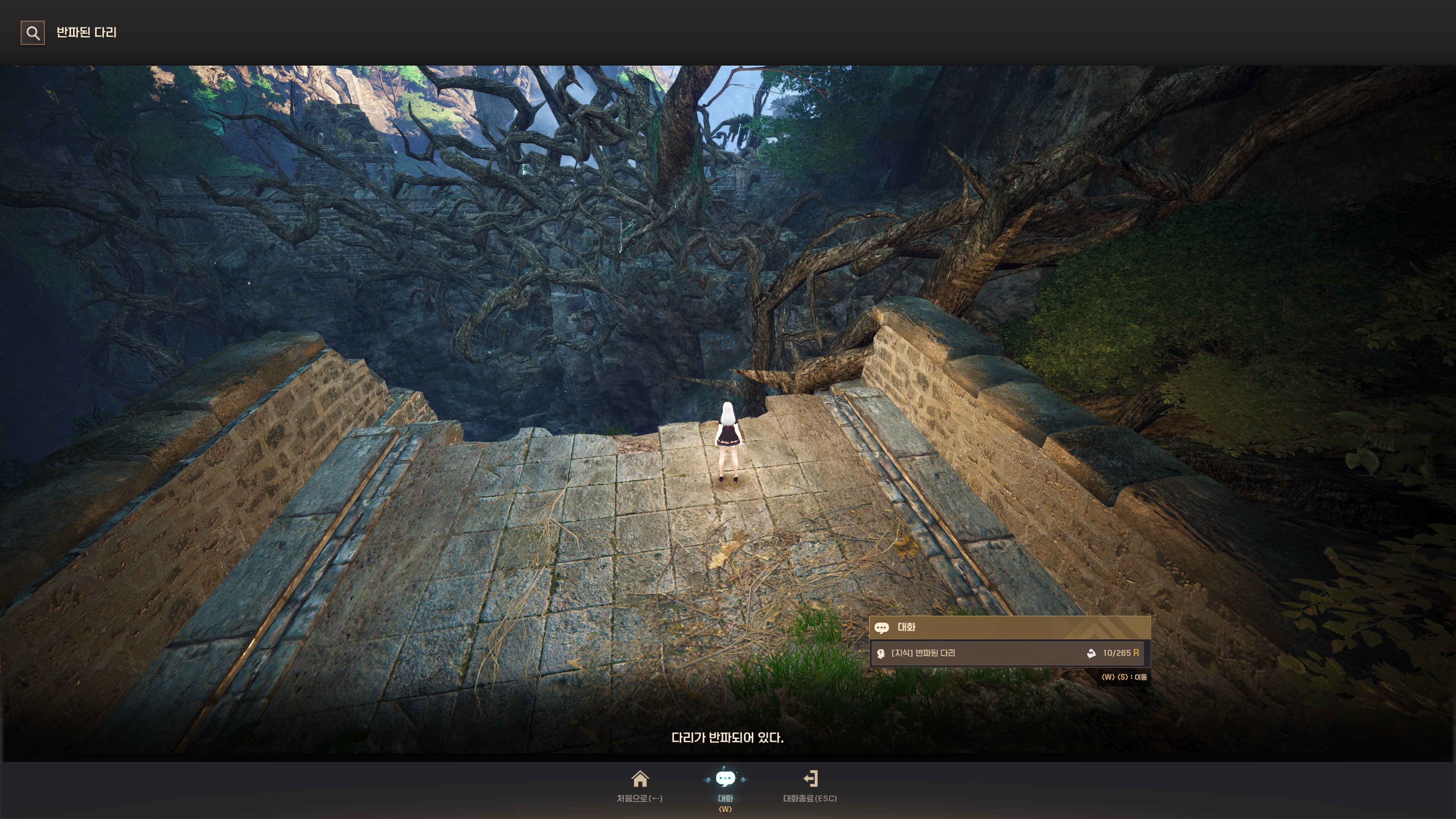 → 오르의 밑동 2번째 구역(다가오는 예언의 실타래) 왼쪽의 부서진 다리 앞. 지식 획득 시 기운 10이 소모돼요.
