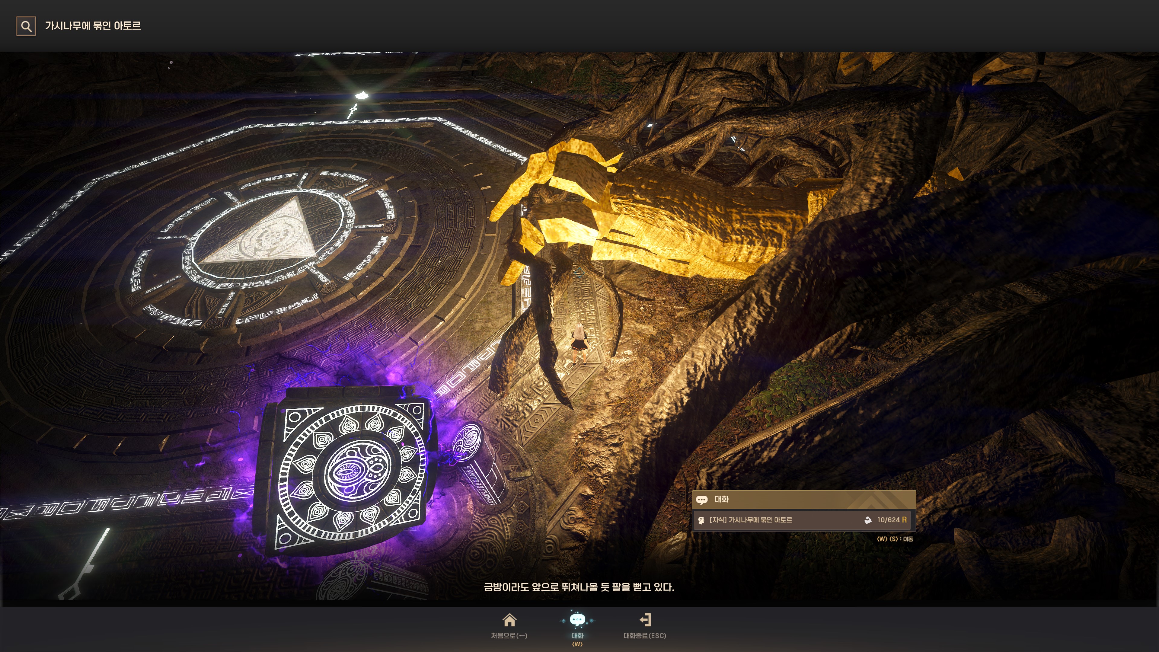 → 오르의 밑동에서 '거대한 가시나무 덤불' 지식에서 오른쪽. 지식 획득 시 기운 10이 소모돼요.