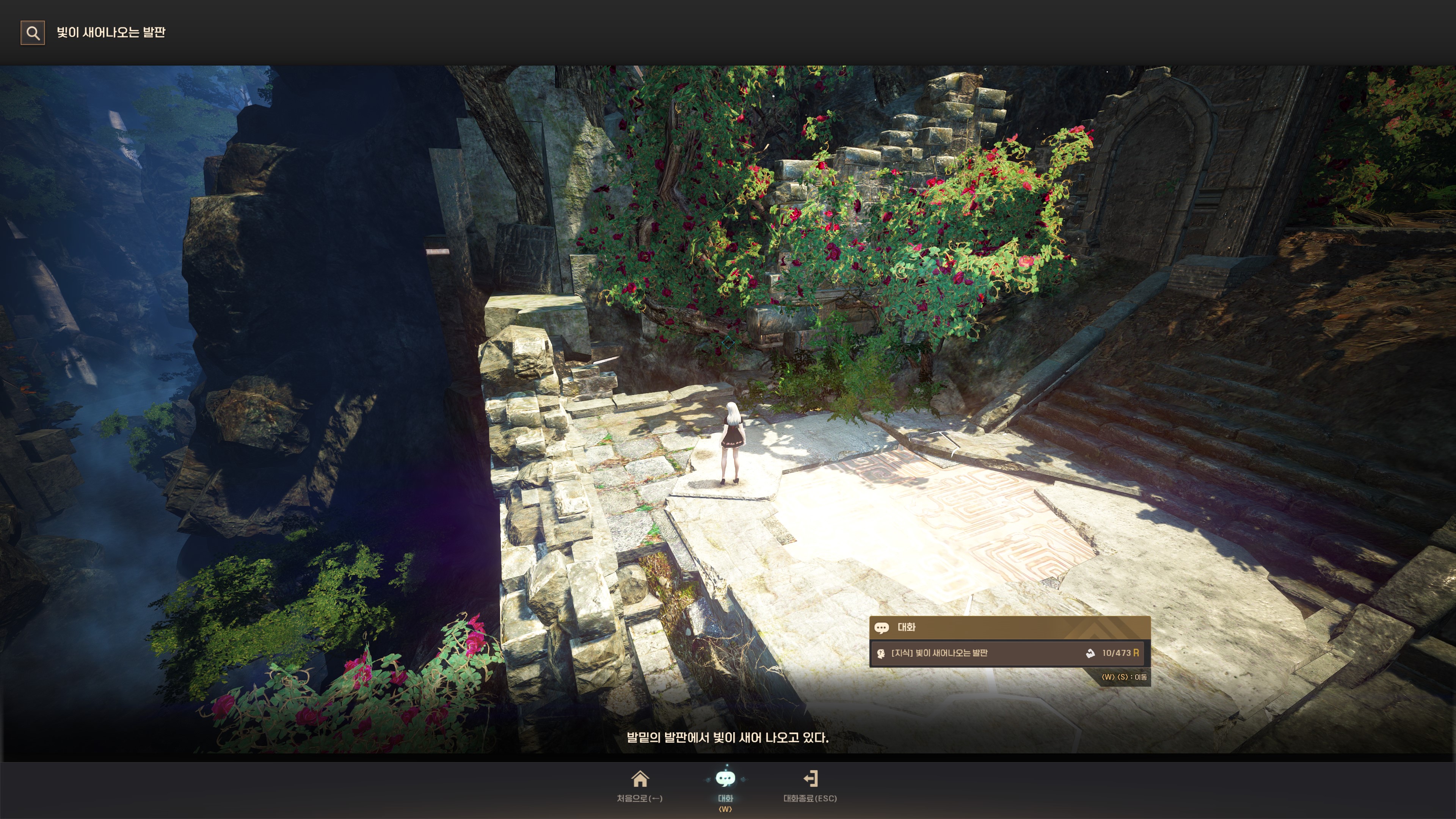 → 오르의 정원 입구 올라가는 계단. 지식 획득 시 기운 10이 소모돼요.