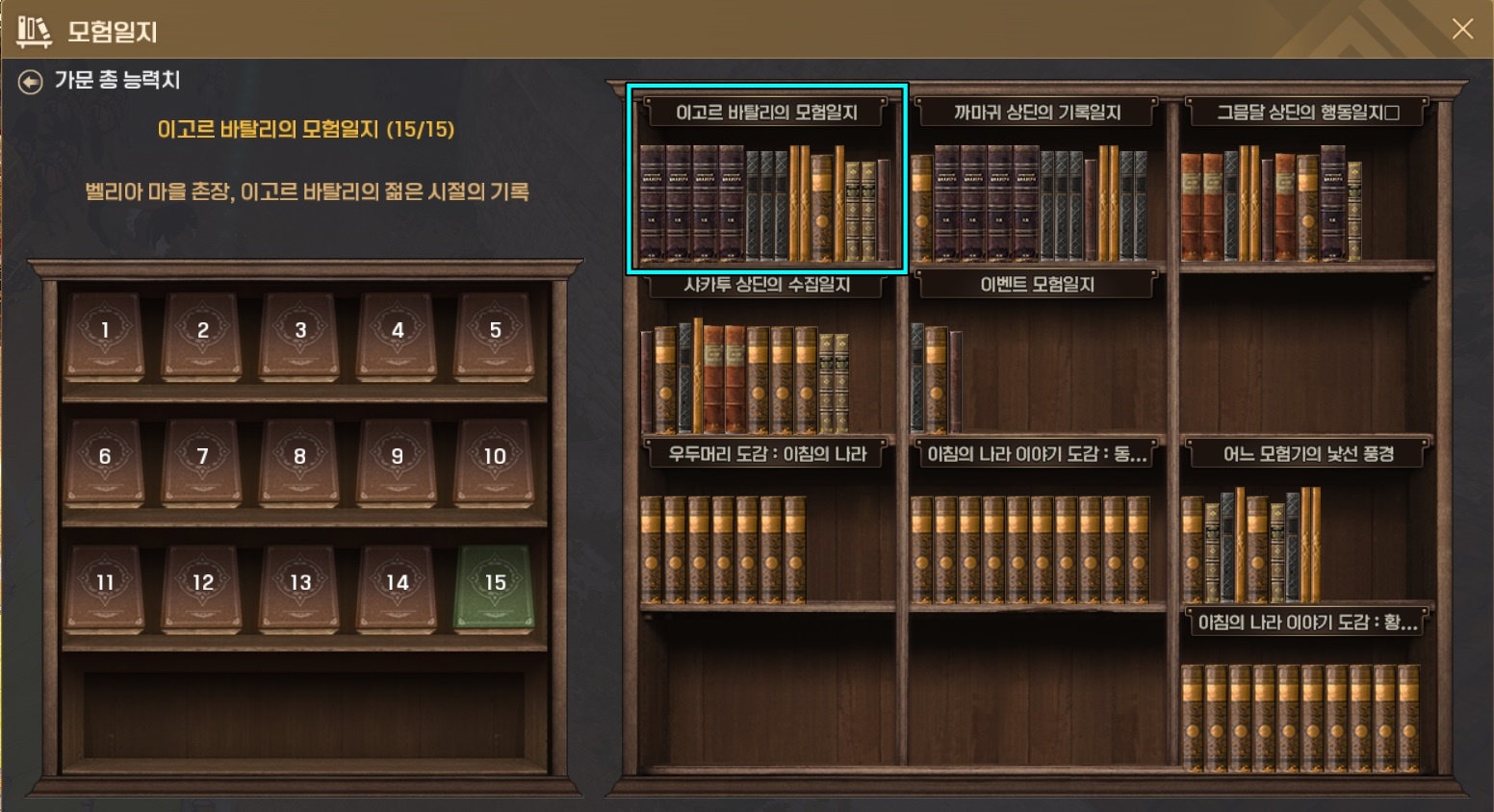 2025.07.23 업데이트로 모험일지 책장의 보상이 변경되었습니다. 스펙업에 관련된 보상은 전부 이고르 바탈리의 모험일지로 통합되었고, 다른 모험일지들은 칭호등의 보상으로 변경되었습니다.
