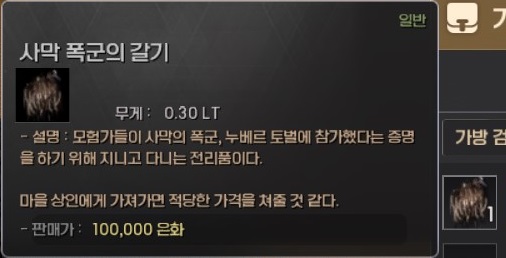 사막 폭군의 갈기는 사라지는 아이템이 아니기 때문에 누베르를 미리 잡아서 획득해 두는 게 편합니다.