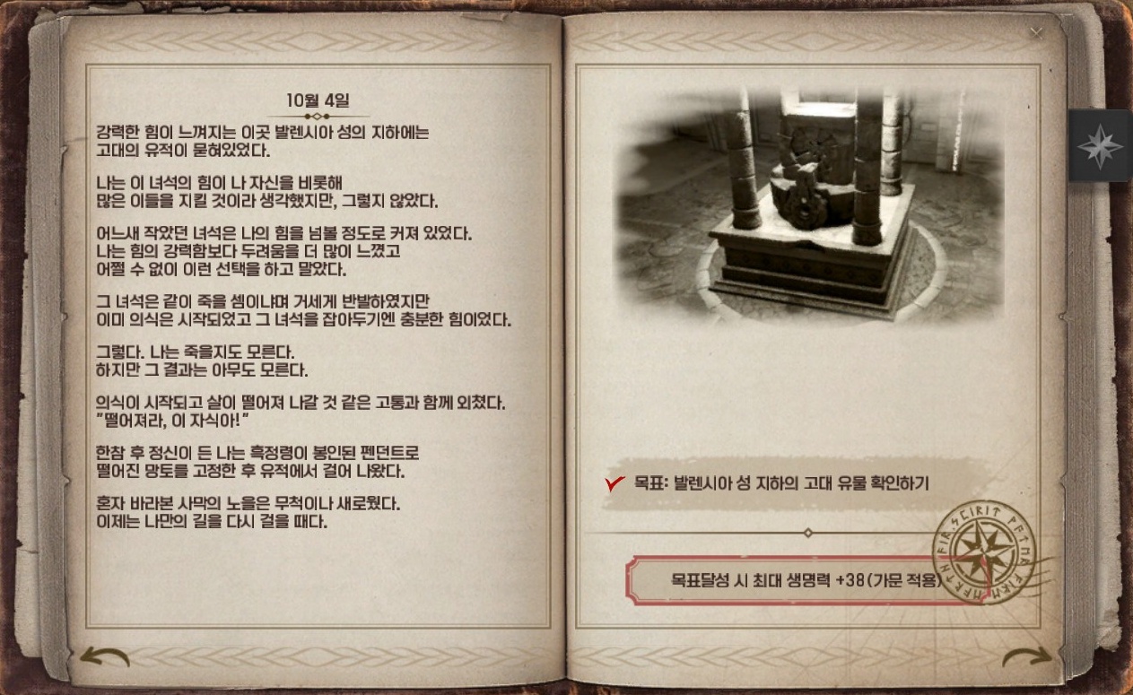 → 발렌시아 메인 의뢰를 진행하다 보면 들리는 발렌시아 성 지하의 유물과 상호작용하면 됩니다.