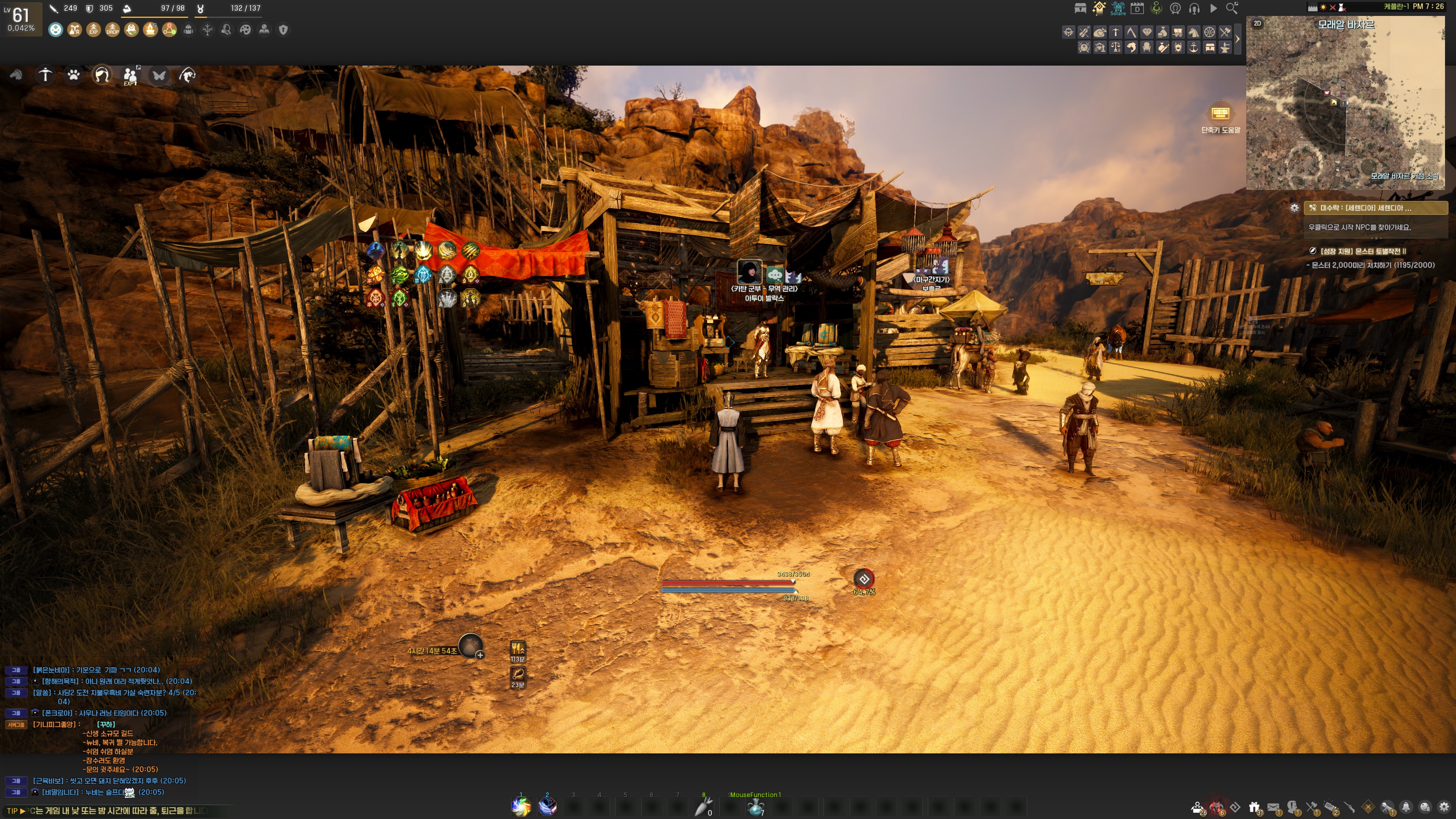 → 사막 지역에 넓게 분포해 있는 모래 정령 1마리 처치하기
