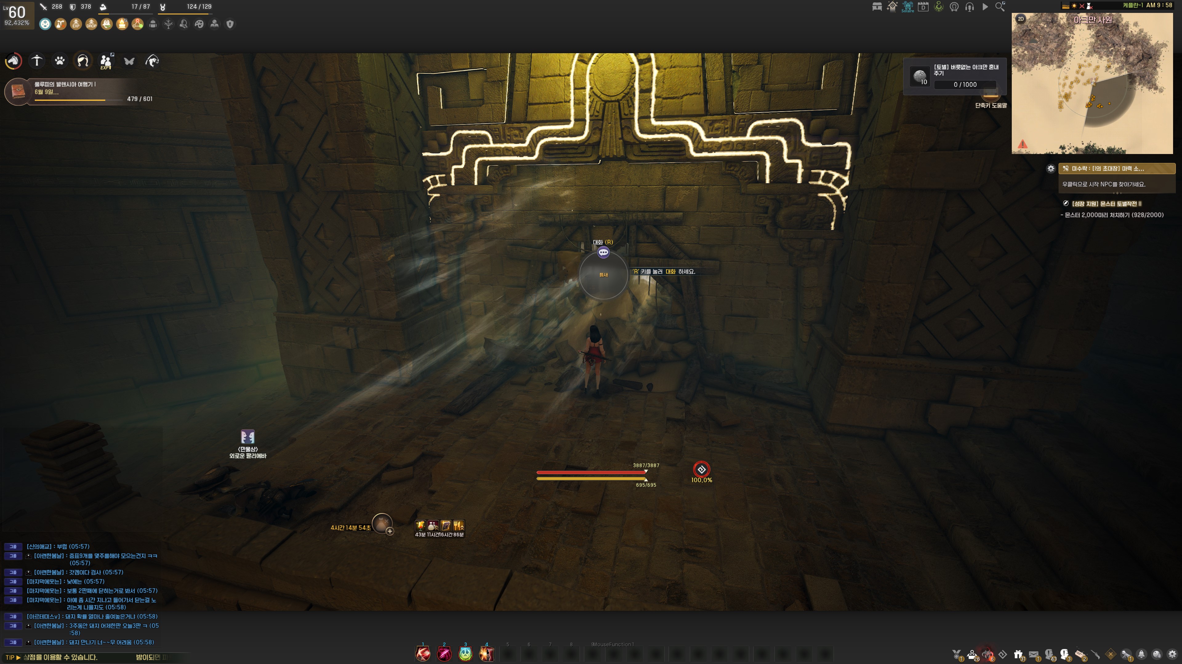 → 아크만 사원 입구를 통해 입장 후, 아크만 사원으로 지역이 바뀌면 탈출을 사용하면 <만물상> 외로운 팔리에바 앞으로 이동됩니다. <만물상> 외로운 팔리에바와 대화하면 완료할 수 있습니다.