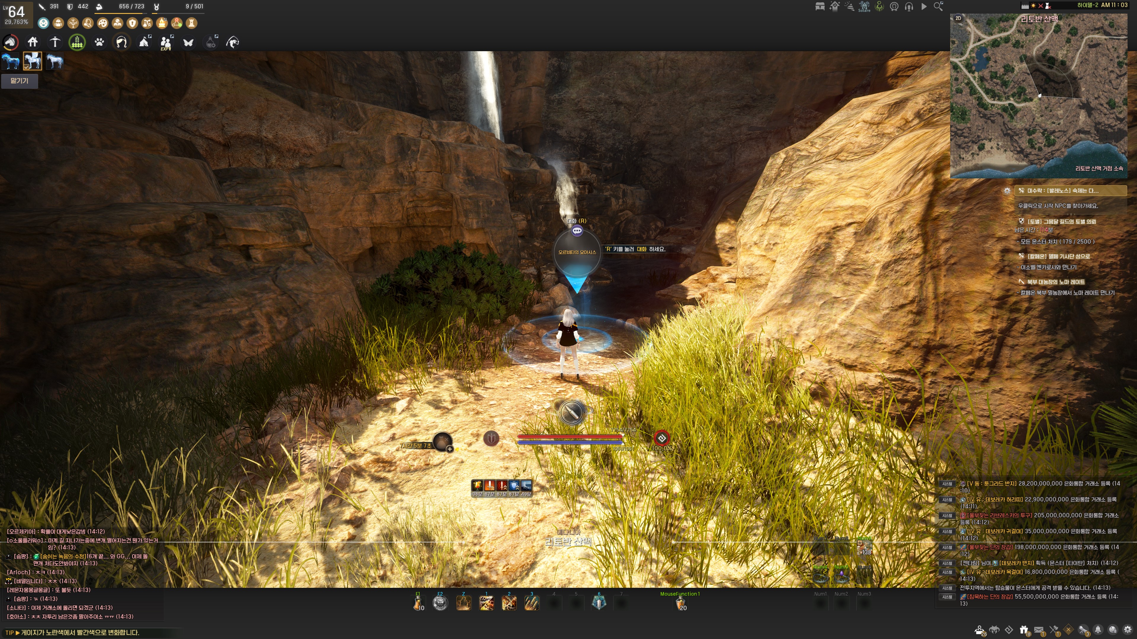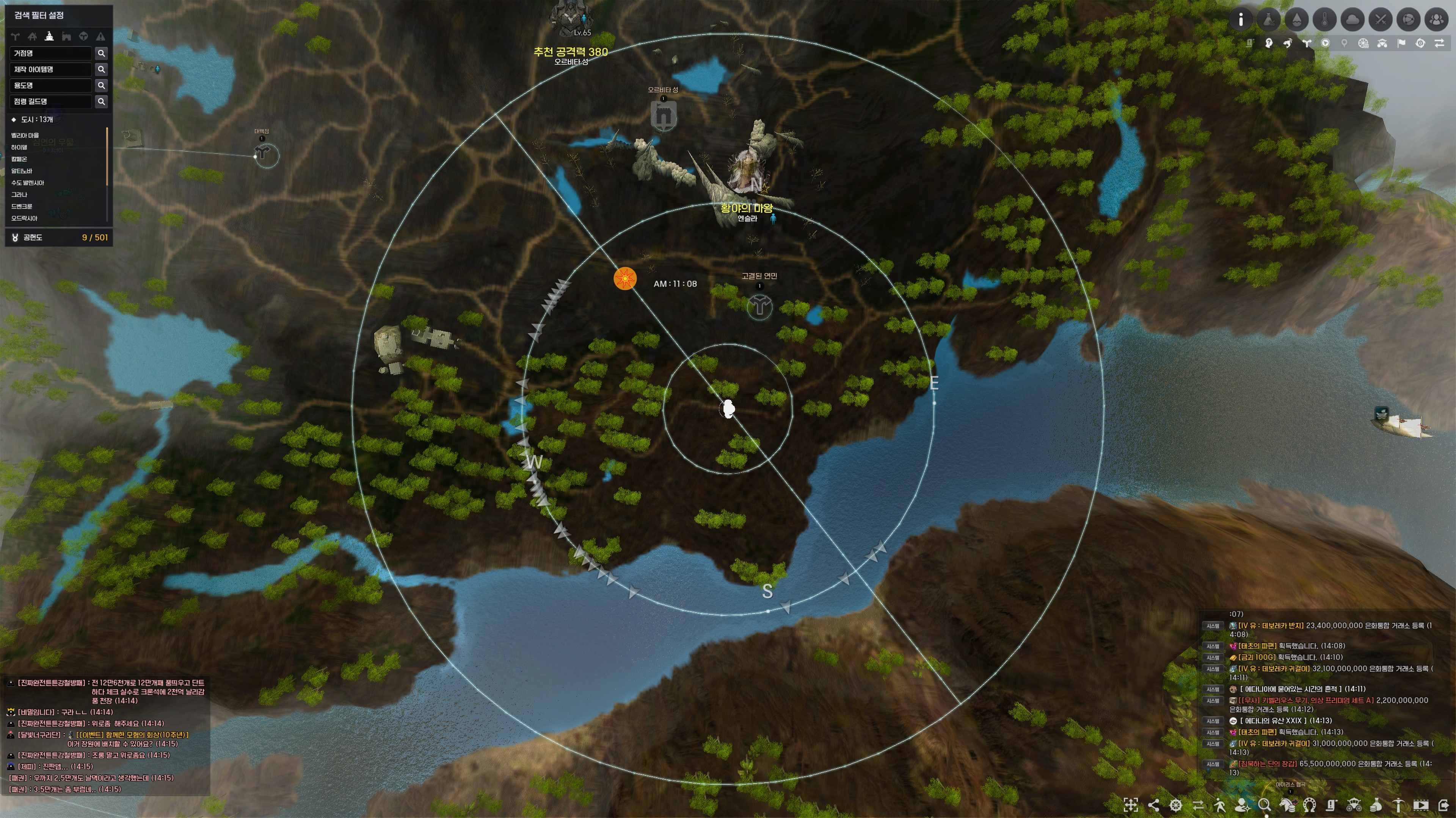 → 아알의 계시 2시 방향에 있는 우르나스 산맥 <거점관리인> 데네르 옆