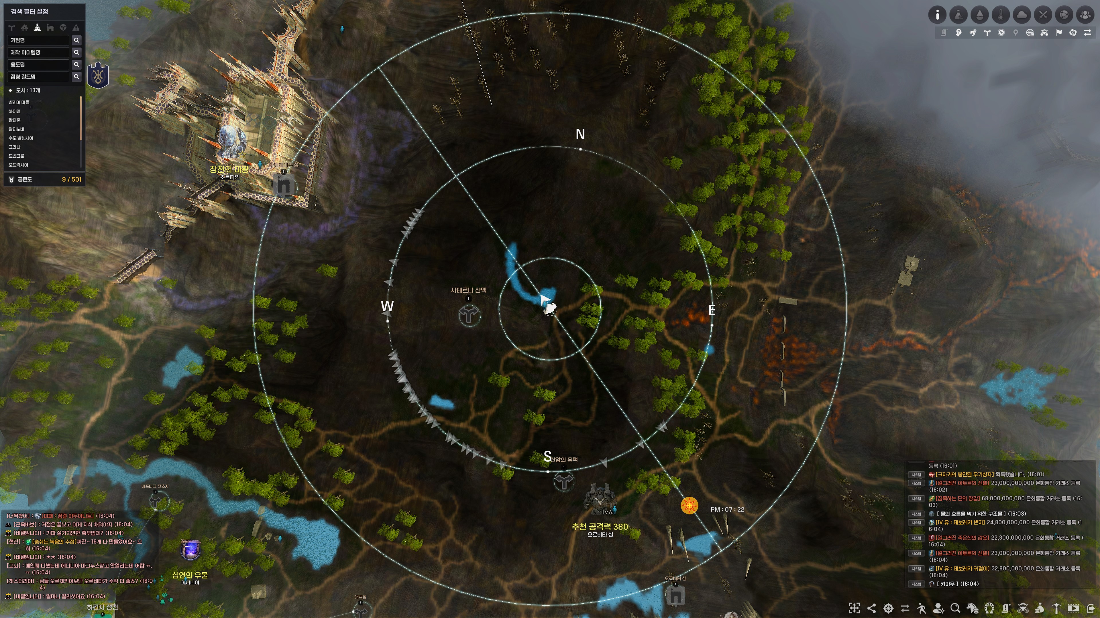 → 아에테리온 성 7시 방향