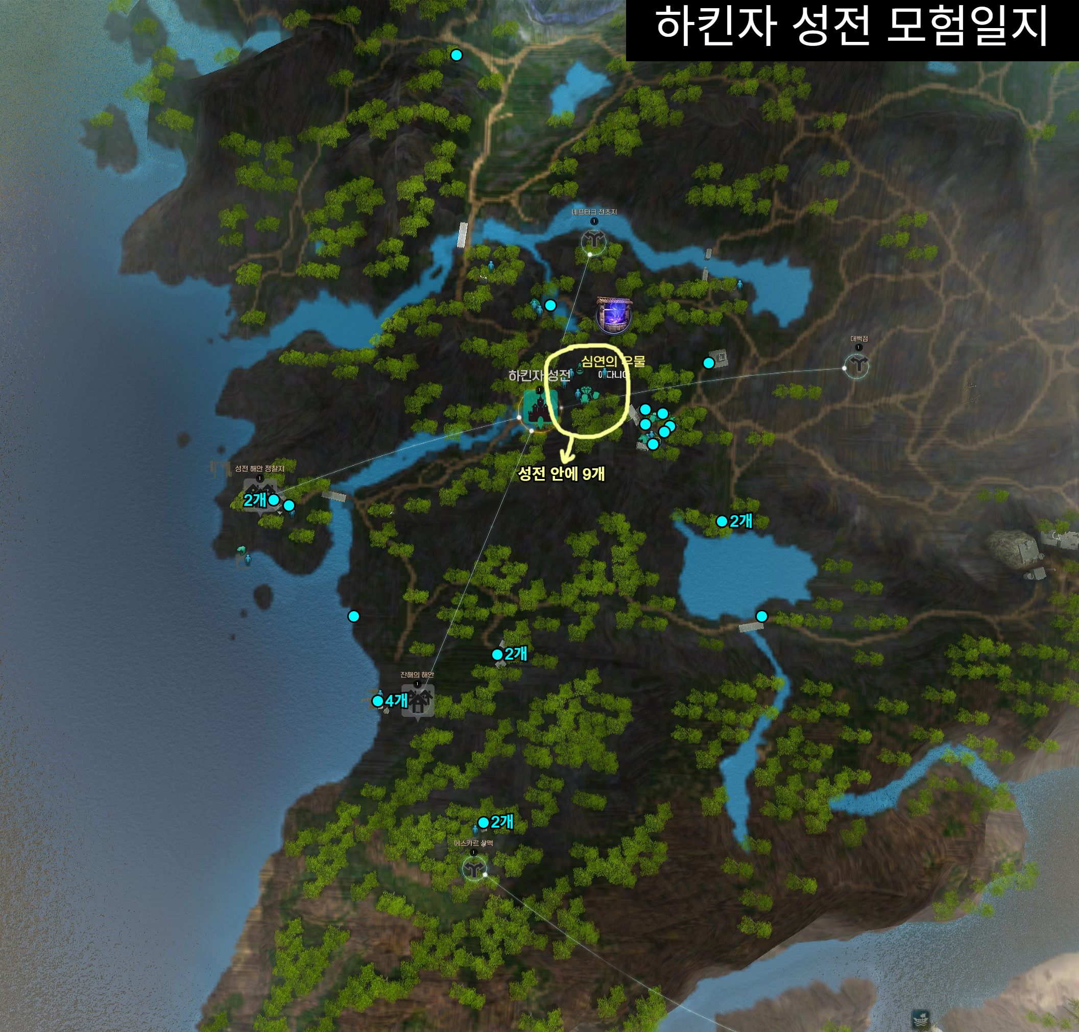 하킨자 성전 모험일지 지식의 전체적인 위치입니다.