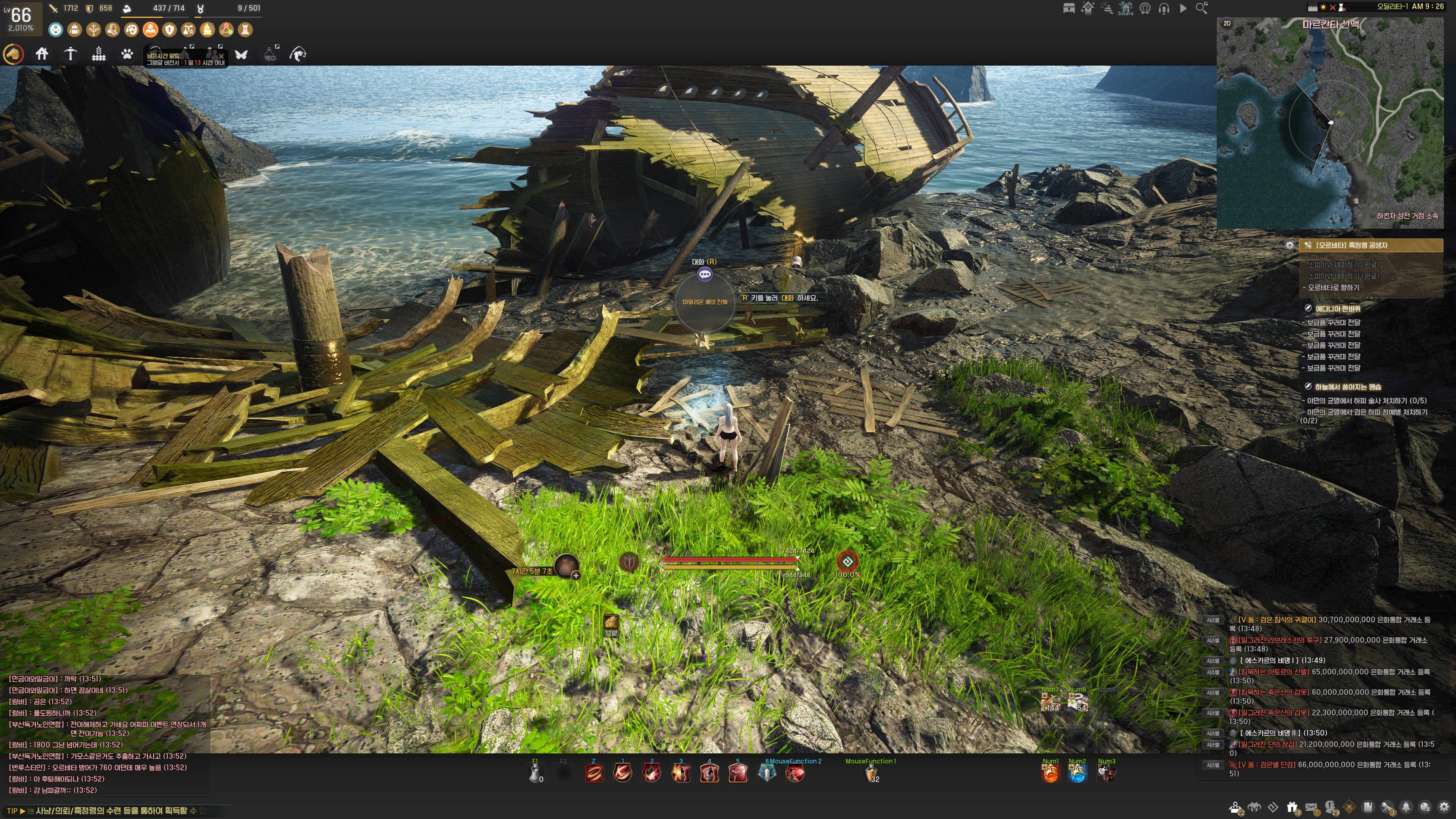 → 잔해의 해안 11시 방향 해안가 부서진 배 앞