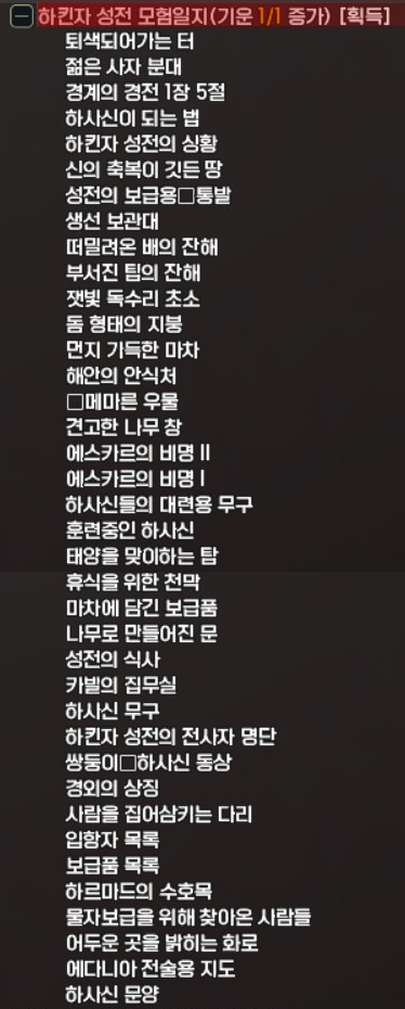 2025.08.20 업데이트로 추가된 에다니아 지역에서 획득할 수 있는 하킨자 성전 모험일지 지식 정보입니다.