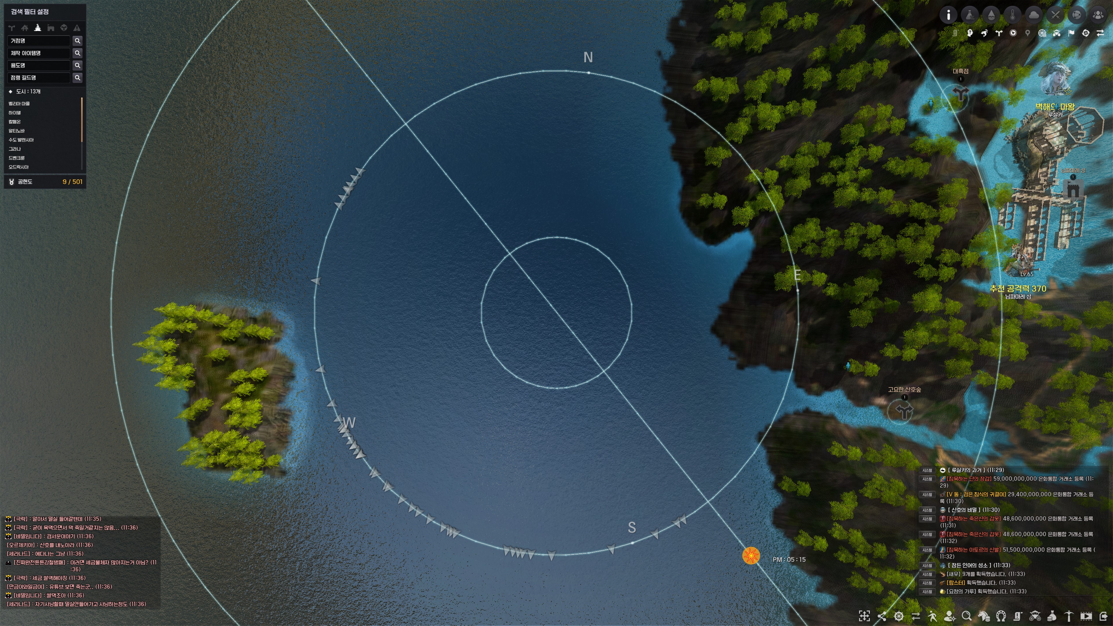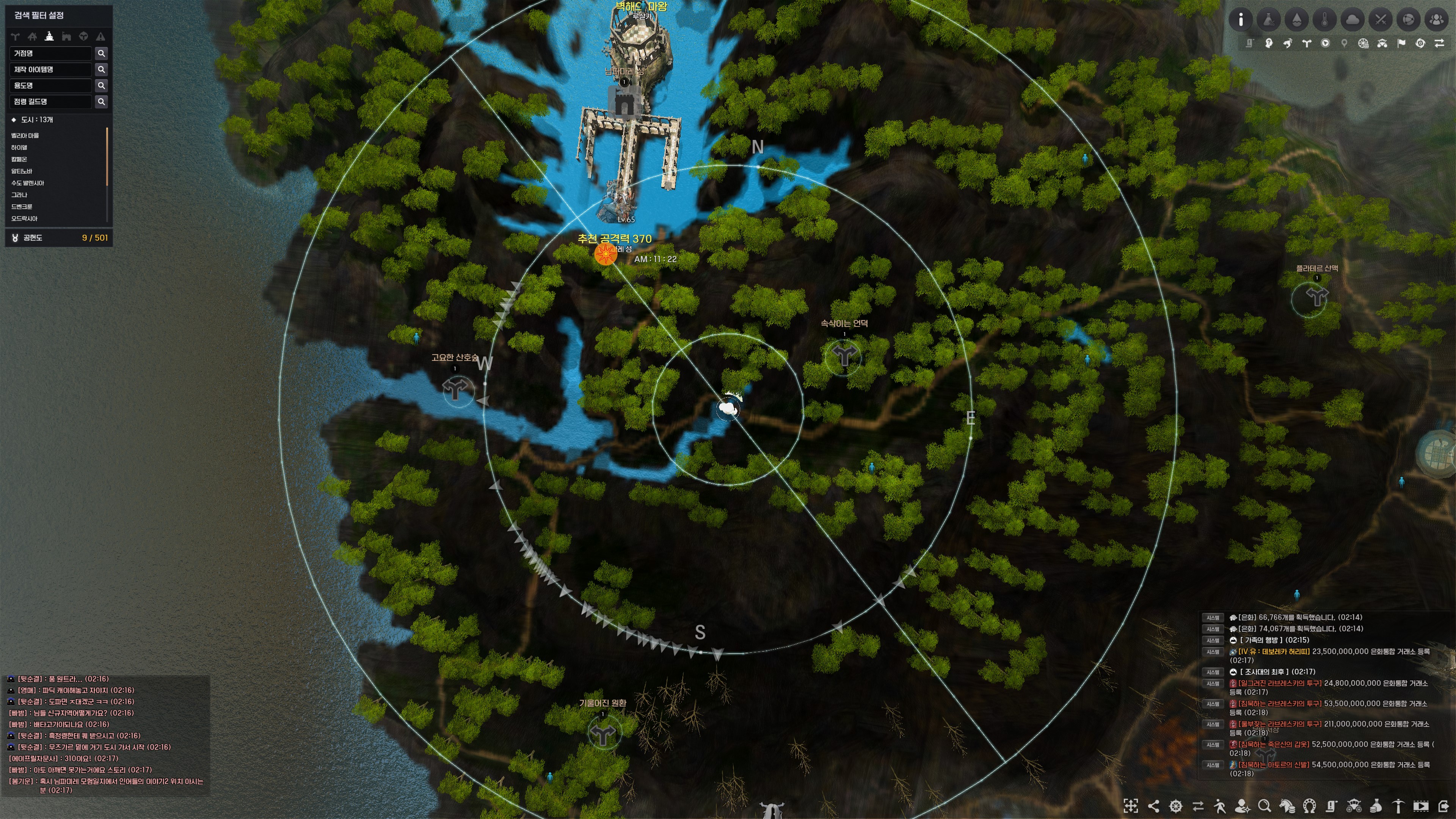 네피아 협곡, 은빛 물마루는 거점은 없고 미니맵에만 표기되는 지형입니다.