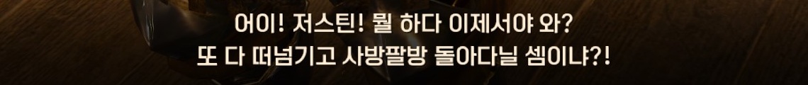 | [저스틴의 귀환] 11년 만의 귀향 | 60레벨 이상, [저스틴의 모험] 그는 어디에? 의뢰 완료 ※ 저스틴 바탈리의 모험일지를 완료하지 않아도 의뢰를 진행하실 수 있습니다. |