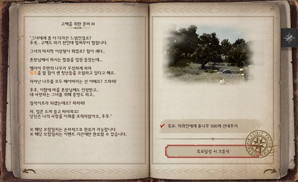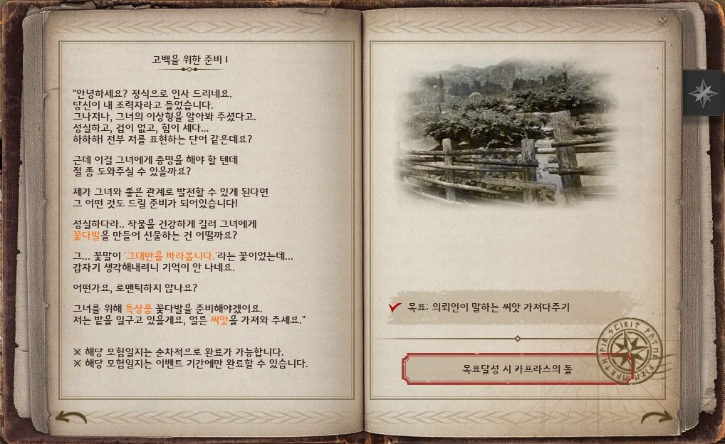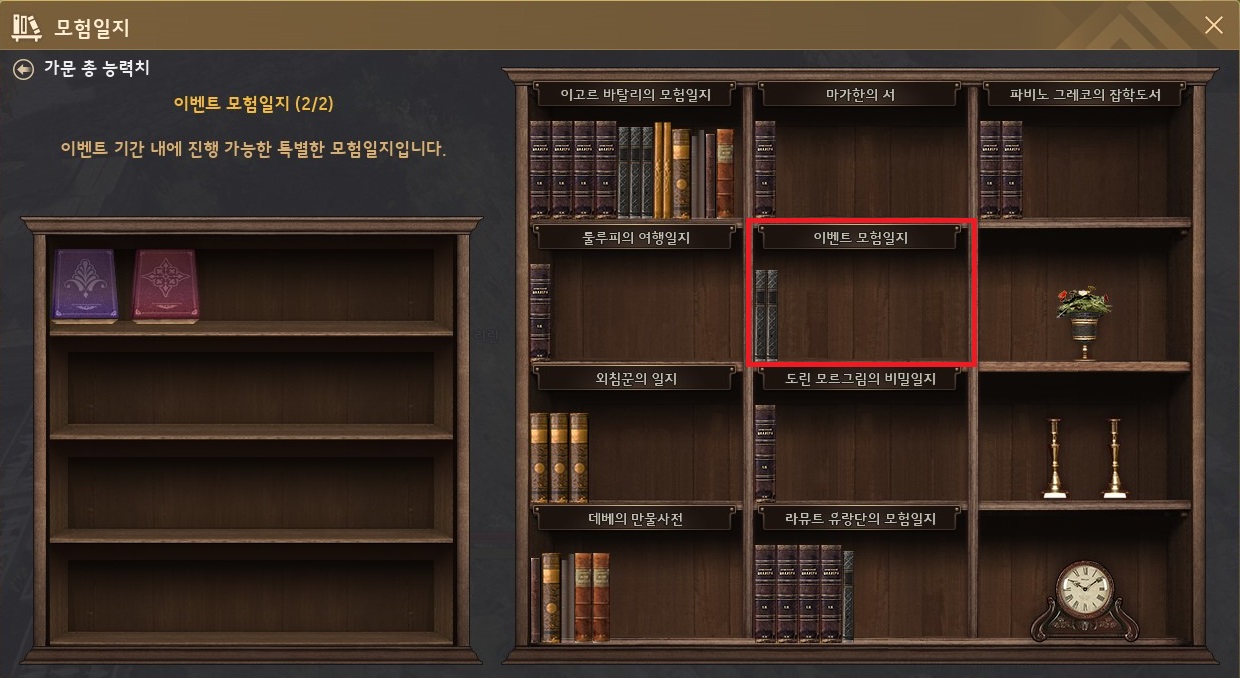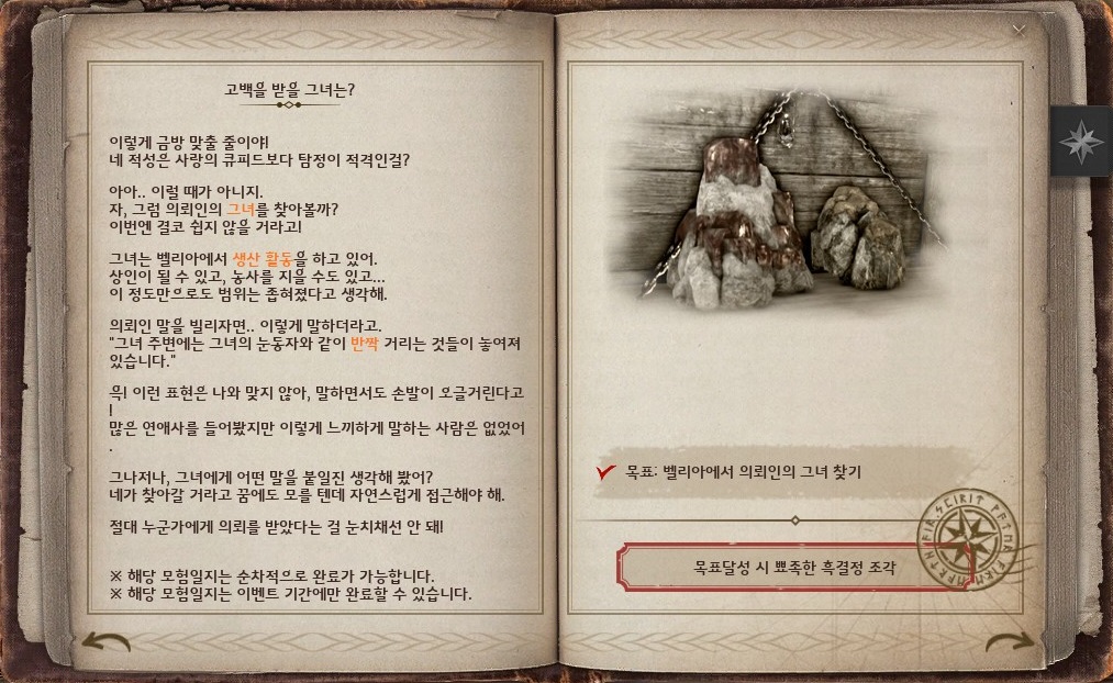 발렌타인 모험일지는 가문 기준으로 완료되며, 이벤트 기간에만 완료할 수 있어요.